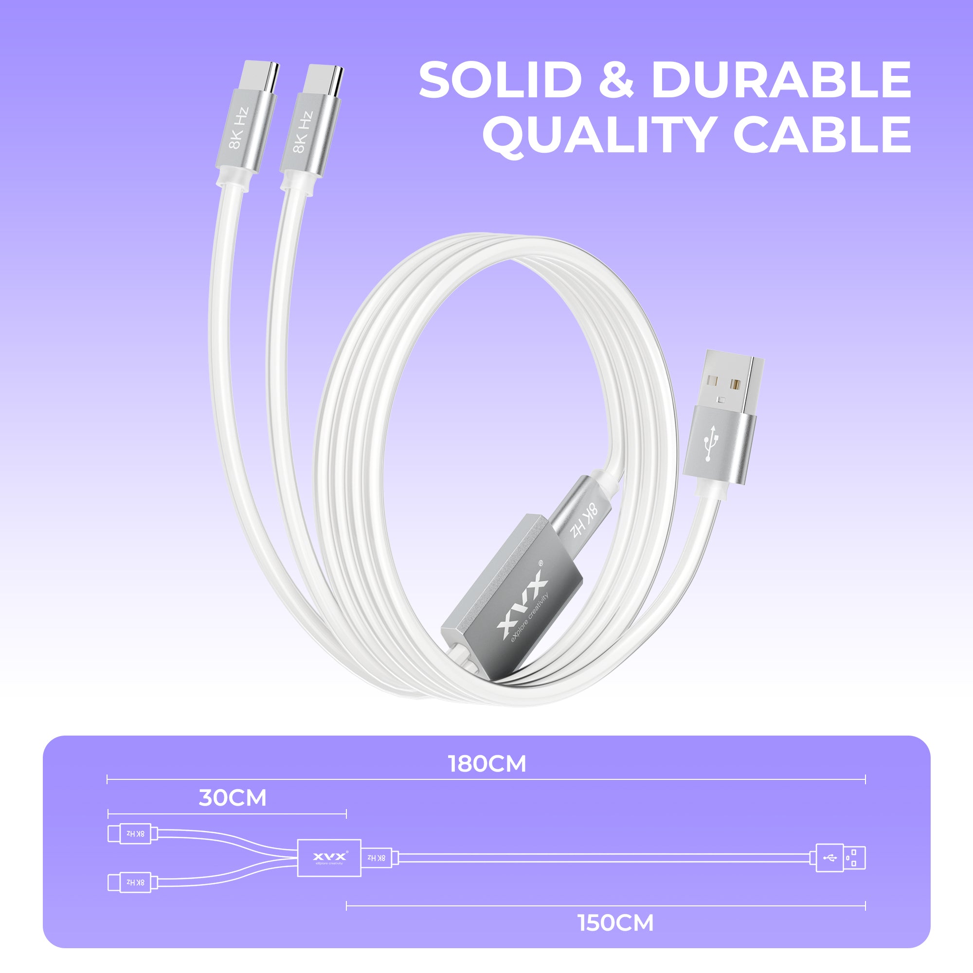 XVX CC8 Keyboard Cable (1-to-2 | 8K Polling Rate | RGB lights)
